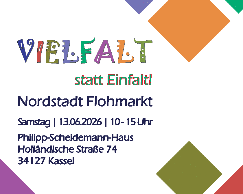 Am Samstag, den 13. Juni 2026, wird es wieder lebendig in der Nordstadt! Von 10:00 bis 15:00 Uhr laden das Quartiersmanagement Nordstadt und der DRK-Stadtteiltreff Mombach zum bunten Flohmarktfest vor dem Philipp-Scheidemann-Haus ein.